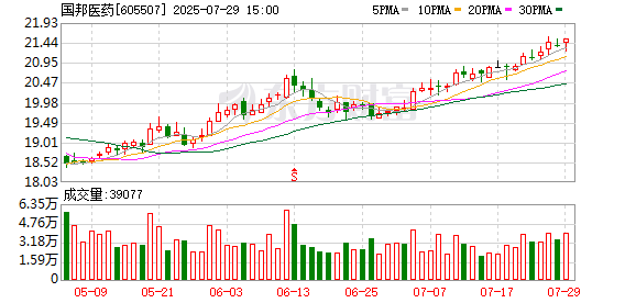 国邦医药(SH 605507,收盘价:21.53元)7月29日晚间发布半年度业绩报告称,2025年上半年营业收入约30.26亿元,同比增加4.63%;归属于上市公司股东的净利润约4.56亿元,同比增加12.6%。