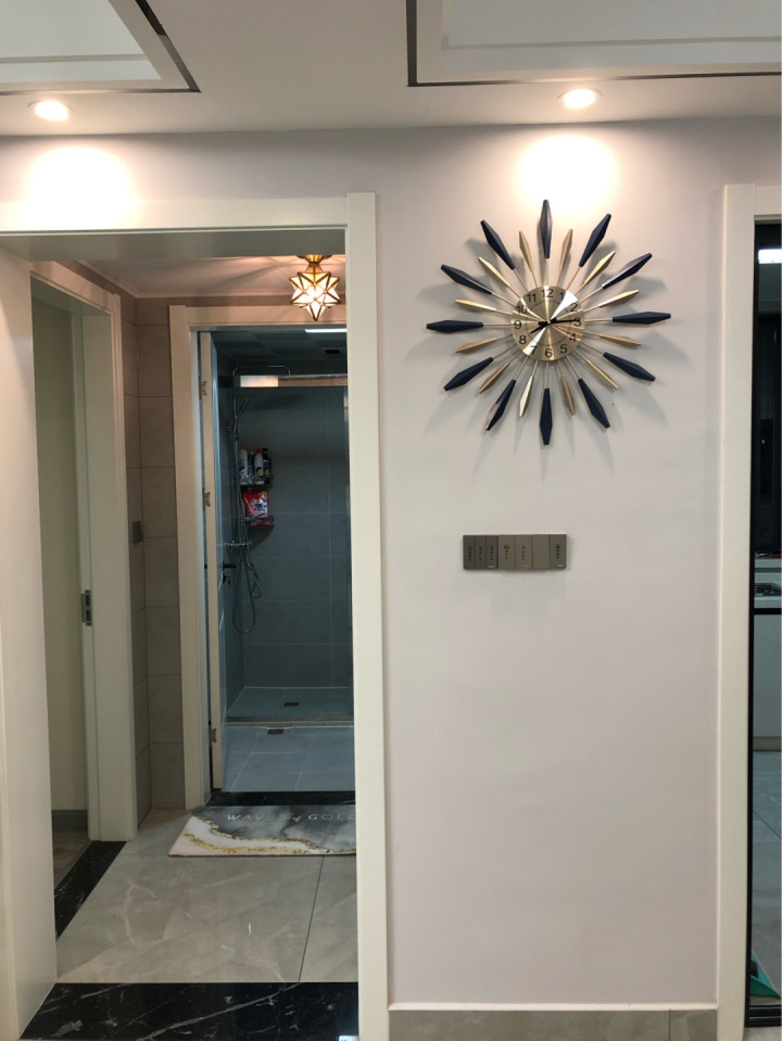 为了不让过道上的墙面显得太过于空白,就挂上了这个装饰钟,不仅好看,而且实用,很多朋友都来找我要链接,实物会更加的好看,而且质感也非常好。